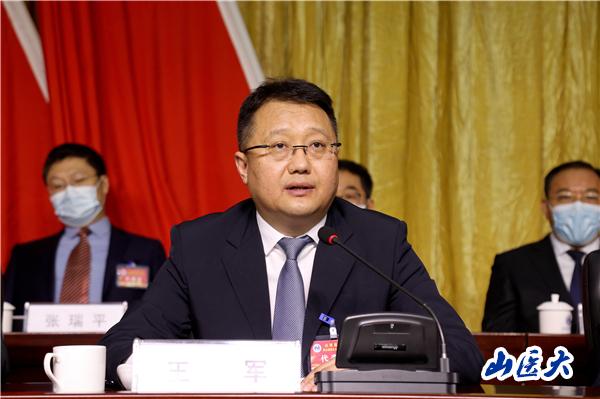 王軍在第二次全體會議的講話中指出,這次教職工代表大會是在全校深入學習貫徹黨的二十大精神、全面推動學校高質量發展的關鍵時刻召開的一次十分重要的會議,進一步統一了思想,達成了共識,凝聚了學校發展合力。2023年是深入學習貫徹黨的二十大精神的開局之年,是實施“十四五”規劃承前啟后的關鍵一年,也是貫徹落實學校第七次黨代會精神、全面開啟全國一流研究應用型醫科大學建設新篇章的踔厲奮發之年。站在新的歷史起點上,學校的發展目標更為明確,改革任務也更加艱巨,需要各位代表以及全校師生醫護員工共同努力。 王軍就學習貫徹好黨的二十大精神,充分發揮教代會作用,落實好本次會議提出的各項目標任務,他提出三點意見:一是以習近平新時代中國特色社會主義思想為指導,堅定社會主義辦學方向。堅持理論武裝,推動學習宣傳貫徹黨的二十大精神走深走實,堅持黨的領導,以高質量黨建引領學校事業高質量發展,堅持鑄魂育人,全面落實立德樹人根本任務,辦好人民滿意的高等醫學教育。二是以建設全國一流研究應用型醫科大學為目標,加快推進學校高質量內涵式發展。按照學校第七次黨代會的戰略部署和學校對2023年工作的具體安排,深化改革創新謀發展,厚植家校情懷,敢于奮斗,善于團結,勇于擔當,把美好藍圖落實落地落好,推進學校高質量發展。三是以堅持和完善教代會制度為保障,廣泛凝聚智慧力量,服務學校發展大局。充分發揮教代會的政治優勢和組織優勢,積極發揮校工會的團結引領和服務作用,發揮代表履職盡責共謀發展的主人翁作用,推進學校治理體系與治理能力現代化,為學校事業高質量發展提供堅強有力的保障。