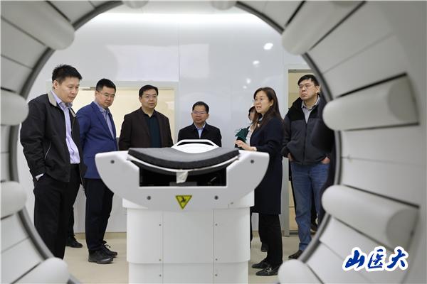 李海濤一行實地考察了中都校區,重點參觀了醫學科學院科技大樓和實驗動物中心,對我?萍計教ㄓ布建設給予了充分肯定;在迎澤校區,專家們參觀了教育部分子影像精準診療省部共建協同創新中心、干細胞再生醫學研究中心等省部級科技平臺建設成果,對我校在分子影像精準診療高端設備研制和干細胞治療領域取得的成績給予了高度評價;在附屬第一臨床醫學院,專家組重點參觀和調研了國家衛健委塵肺病重點實驗室,山西省136興醫工程精神衛生學、呼吸與危重癥醫學學科建設情況,對附屬醫院臨床??平ㄔO和平臺建設給予了指導。