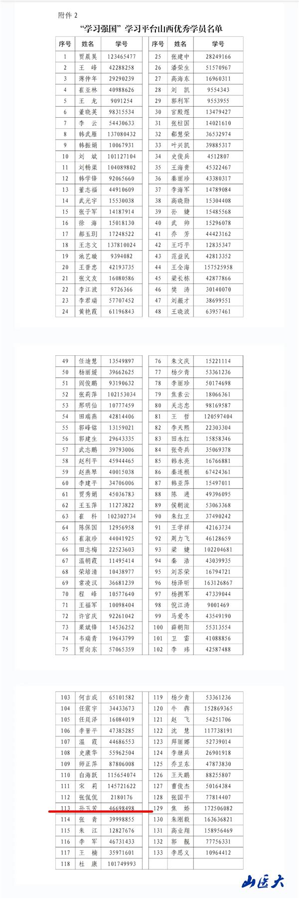 近日,“學習強國”山西學習平臺公布了“2022年度‘學習強國’山西學習之星、強國志愿之星、優秀工作者、模范組織”評選結果,我校獲評“學習強國”學習平臺山西模范供稿單位,我校國際合作與交流處教師孫玉芳獲評“學習強國”學習平臺山西優秀學員稱號。