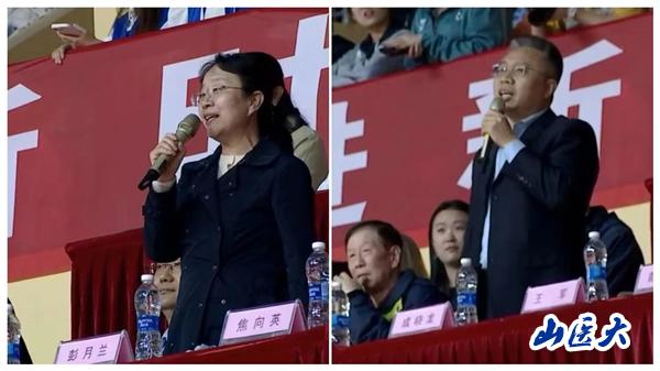 當(dāng)莊嚴的國歌響起時,現(xiàn)場觀眾與運動員齊聲合唱,場面震撼。成曉龍致開幕辭,彭月蘭宣布比賽開始,王軍為決賽雙方跳球。
