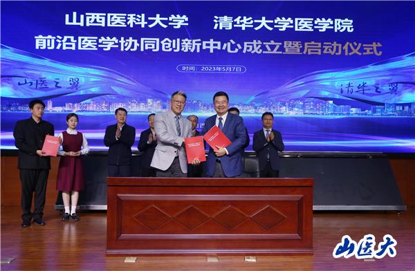 解軍首先致歡迎辭,他指出,黨的二十大明確了“到2035年建成教育強國”的宏偉目標,把教育、科技、人才一體化上升為國家戰略。清華大學醫學院對標世界基礎醫學科技前沿,在人才培養、學科建設、成果轉化等方面發揮著引領作用。前沿醫學協同創新中心的啟動,將更充分發揮清華大學醫學院科研引領作用,依托c7c7.app的地域資源優勢,聯合開展新醫科專業人才培養,圍繞國家與地方重大健康需求成立聯合實驗中心,共建國家級創新平臺,加強高水平公共衛生學院和臨床醫學高峰學科建設,開展核心技術聯合攻關,推動技術成果轉化。這必將進一步推動山西醫學教育、醫學研究和衛生健康事業的發展,為建設教育強國、健康中國,推動衛生健康事業發展貢獻更大的力量。