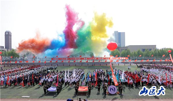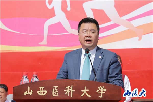 解軍在開幕辭中指出,體育一直是德智體美勞“五育并舉”的重要內容,是落實立德樹人根本任務的重要途徑。長期以來,學校以培養卓越醫師為目標,不斷提高體育教育水平,在體育課程改革、校園體育文化、學生體質健康、競技體育等方面多點布局、全面開花。近年來,學校高度重視體育教育投入,大力支持開展全覆蓋、高質量的體育活動,全面推行各項舉措以提高學生健康水平,學生體質狀況逐年提升。近三年,學校足球、籃球、排球、健美操等代表隊,多次代表學校參加國家級及省級比賽并取得了驕人的成績。這些成績的取得,激勵著更多的師生醫護員工更加熱愛體育,強身健體。六十重開新甲子,既是漫長的時間跨度,更是一個重要的里程碑時刻。本屆運動會恰逢六十甲子,是有史以來規模最大、比賽場次最多、參賽單位最全的一次運動會,是所有山醫人團結相聚的一次盛會。希望全體運動員、全體裁判員會堅持“友誼第一,比賽第二”的原則,以更快、更高、更強的體育精神投身比賽,賽出友誼、賽出公平、賽出水平。本屆運動會一定能夠辦成精彩、團結、奮進的盛會,為早日建成全國一流研究應用型醫科大學貢獻青春力量和體育力量!