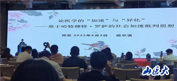 我校人文社會科學學院鄧蕊教授受邀出席論壇并作題為《論醫(yī)學的“加速”與“異化”——基于哈特穆特·羅薩的社會加速批判思想》專題報告。鄧蕊首先對羅薩的社會加速批判思想進行理論框架分析,指出“加速”導致“異化”是醫(yī)學病態(tài)發(fā)展的根源與呈現(xiàn),最后提出建立“共鳴”是醫(yī)學“新異化”的解決之道。