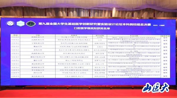 基礎醫(yī)學創(chuàng)新研究暨實驗設計論壇由高等學校國家級實驗教學示范中心聯(lián)席會主辦,共分校賽、預賽和總決賽三個階段進行。作為中國醫(yī)學領域最高級別的學生學科競賽之一,賽事以“崇尚科學、追求真知、勇于創(chuàng)新、公平公正”為宗旨,不僅考驗學生創(chuàng)新能力和實驗技能,更考驗新醫(yī)科建設背景下教師指導能力。據(jù)悉,本次比賽全國共有60余所學校參加,在復賽評比中獲得一等獎與二等獎的作品入圍決賽,34支隊伍進入最終金、銀、銅牌決賽。
