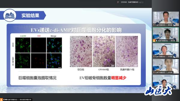 口腔醫(yī)學院參賽作品《乳酸桿菌細胞外囊泡經(jīng) c-di-AMP 調控 STING-IFN-β影響牙槽骨巨噬細胞破骨向分化的機制研究》項目創(chuàng)新性地探討了一種針對牙周炎導致的牙槽骨吸收的新型治療方式:乳酸桿菌釋放的細胞外囊泡內含環(huán)二腺苷酸可跨物種激活人巨噬細胞表面干擾素基因刺激因子從而調控巨噬細胞破骨向分化治療其導致的牙槽骨吸收,同時避免乳酸桿菌的產(chǎn)酸致齲作用。團隊成員從牙周炎導致的牙槽骨吸收入手,并深入探究其發(fā)生發(fā)展機制,提出了乳酸桿菌囊泡抑制牙槽骨吸收的治療途徑,實驗設計中,團隊成員依托于重點實驗室和臨床研究中心,熟練掌握了相關實驗途徑與實驗方法,具有理論與人員安排可行性。在實驗完善實施方面,團隊成員多學科交叉互補,專創(chuàng)融合,層層深入,交叉驗證為牙周炎牙槽骨吸收的臨床治療拓展新的視角。