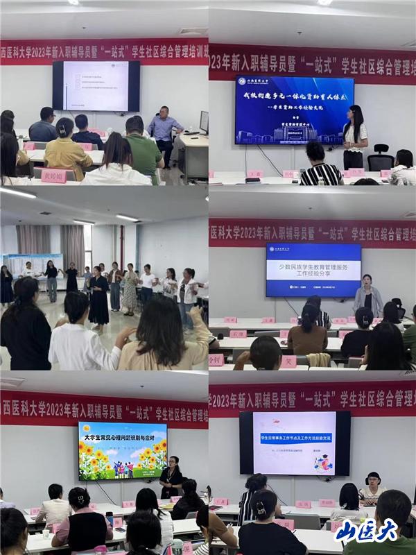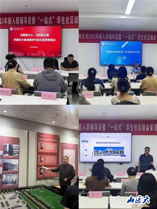學校相關部門負責人就各自主管領域與參訓人員互動交流。校黨委宣傳部部長侯小寶、學生工作部部長張晶、就業指導中心主任郭建鍇、校團委副書記吳曉兵分別以“為國家立心,為民族立魂,鞏固壯大奮進新時代的主流思想輿論”“思想政治輔導員工作的職業認同”“了解校史校情,感悟百年山醫”“黨建帶班團建,班團建促黨建”為題做了專題講座。