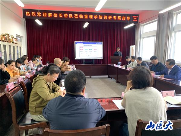 解軍一行聽取了管理學院院長于琦作的工作匯報,與學院教師進行了充分交流,并對大家在教學、科研工作中遇到的困惑一一解答,有針對性地提出指導建議。解軍指出,一要做好頂層謀劃。學校推動各項改革,關鍵是提升二級院系的管理能力和水平,考驗的是院系班子。管理學院要進一步聚焦學校第七次黨代會提出的各項任務要求,在發展中找準自身定位,通過改革讓每一位老師“當家”,充分發揮集體智慧的決策作用。二是要解放思想。充分認清學院的發展形勢,緊抓教育、科技、人才“三位一體”統籌發展戰略和山西省“百億工程”新機遇,通過實施有效的績效改革破解發展瓶頸,加速推進有組織科研,加快推動科教成果創新。三是真抓實干。不僅要找出學院發展存在的問題,更要想出破解問題的有效辦法,拿出具體方案和行動,推動管理學院各項事業高質量發展。