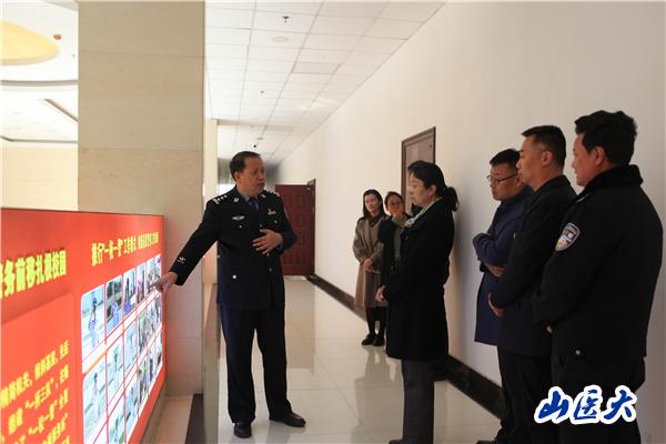 儀式結束后,在王存江的詳細介紹和引導下,大家參觀了高校分局黨建等工作展廳,深入了解高校分局在山西大學城為保障校園安全穩定所開展的具體工作情況。