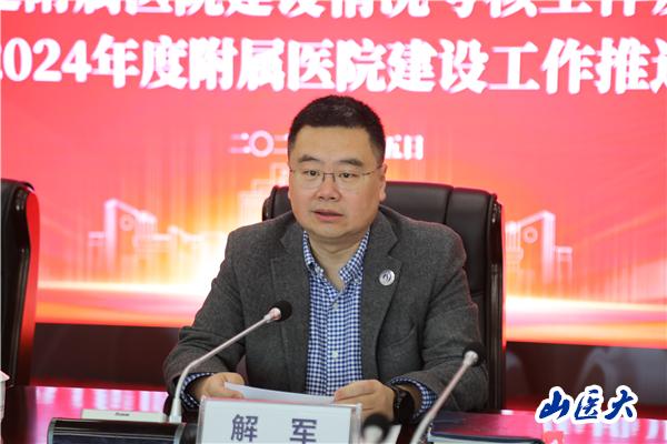 1月5日上午,我校在中都校區教學辦公樓五層會議室召開“新建附屬醫院建設情況考核工作反饋暨2024年度附屬醫院建設工作推進會”。校黨委書記王軍,校長解軍,校黨委常委、副校長劉春,學校辦公室、教務部、科學技術部、人事部、研究生學院、醫院管理部負責人,18所附屬醫院和教學醫院的黨委書記、院長、分管副院長和科教部門負責人等參加了會議。會上,王軍作了題為《建章立制促規范,強化保障提能效,以附屬醫院高質量發展為學校“雙一流”建設提質增效》的講話,會議由解軍主持。