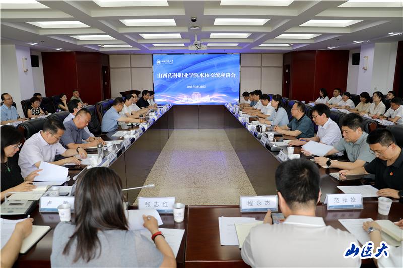 6月25日,山西藥科職業學院黨委書記張軒萍帶隊來到我校中都校區調研交流。校黨委書記王軍出席座談會并講話。校黨委副書記彭月蘭,省紀委監委駐校紀檢監察組組長、校黨委常委楊文斌出席會議。會議由彭月蘭主持。山西藥科職業學院領導班子成員和中層干部、學校相關職能部門和院系負責人參加了座談交流。