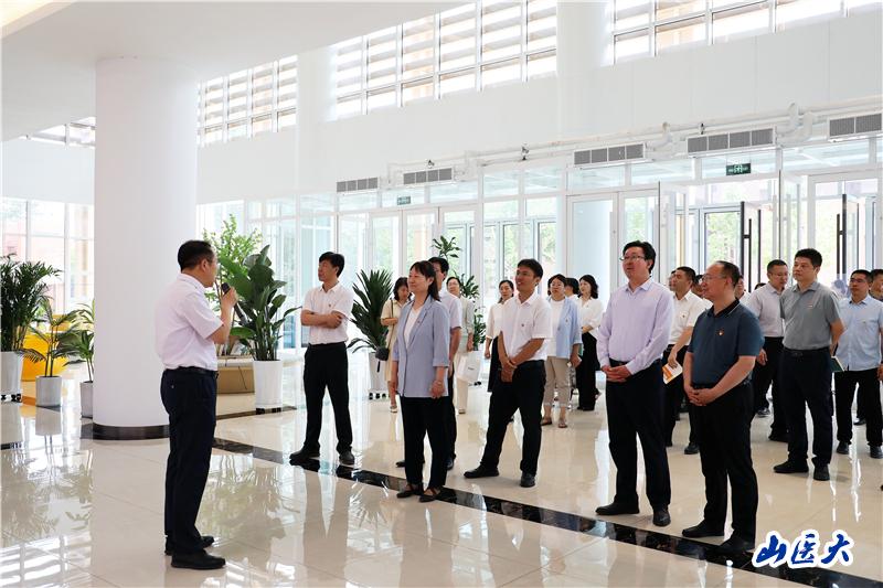 會前,張軒萍一行到學校新時代創新發展成就展、科技樓、實驗動物中心進行了實地調研。