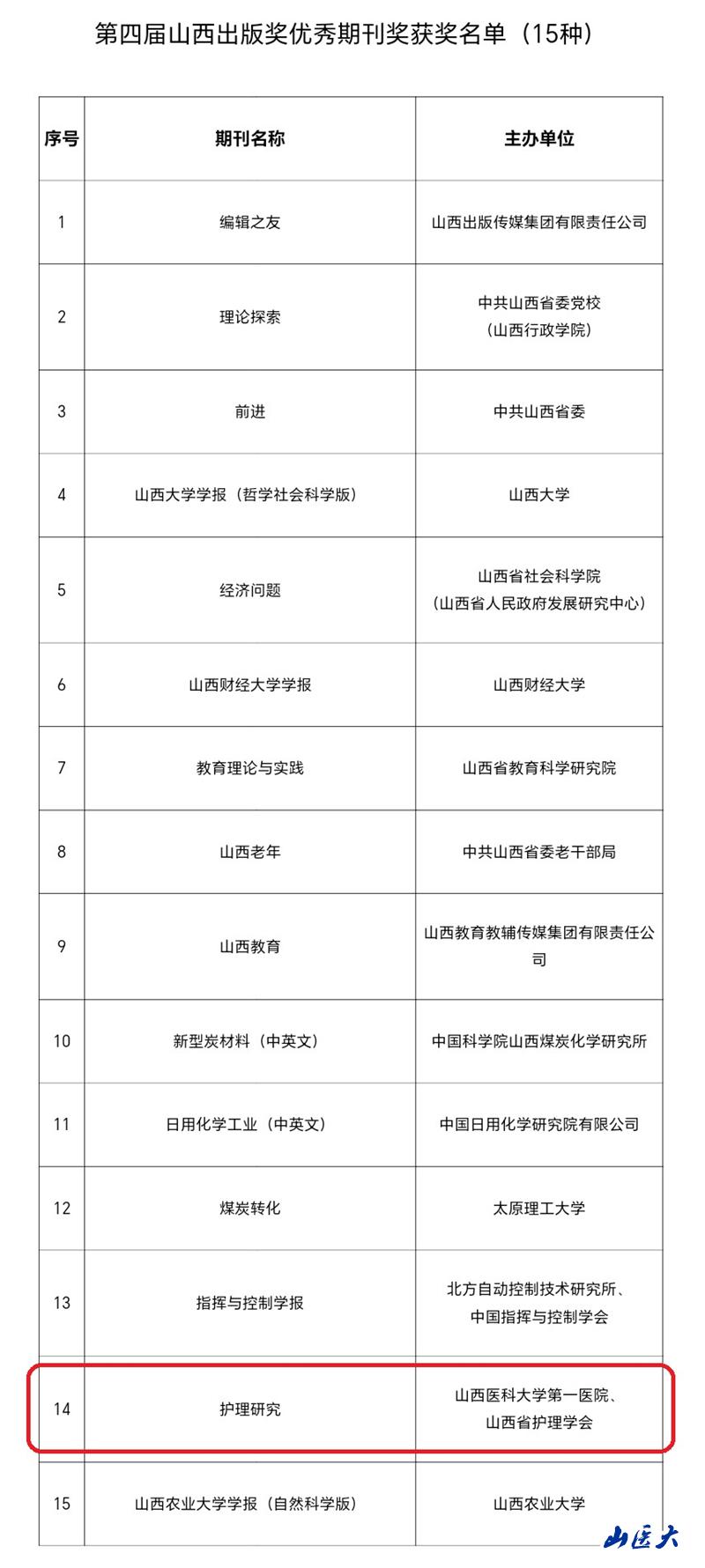 7月21日,山西省新聞出版局揭曉了第四屆山西出版獎(jiǎng)的獲獎(jiǎng)名單,《護(hù)理研究》再次入。倩裼判閆誑。