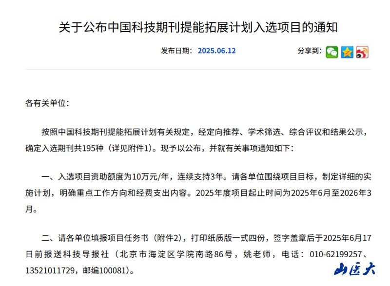 “中國(guó)科技期刊提能拓展計(jì)劃”是中國(guó)科學(xué)技術(shù)協(xié)會(huì)于2025年2月啟動(dòng)的國(guó)家級(jí)期刊培育項(xiàng)目。該計(jì)劃精心遴選并支持一批對(duì)我國(guó)未來科技創(chuàng)新和產(chǎn)業(yè)發(fā)展具有戰(zhàn)略意義、學(xué)術(shù)水平高且發(fā)展?jié)摿Υ蟮膶W(xué)會(huì)主辦的科技期刊,通過培育中國(guó)科技期刊卓越行動(dòng)計(jì)劃的后備梯隊(duì),為我國(guó)科技期刊的梯次進(jìn)階、集約發(fā)展及整體提升奠定堅(jiān)實(shí)基。Ω嚶判閆誑⒄。經(jīng)過定向推薦、學(xué)術(shù)篩選、綜合評(píng)議及結(jié)果公示等嚴(yán)格程序,最終有195種期刊成功入選。