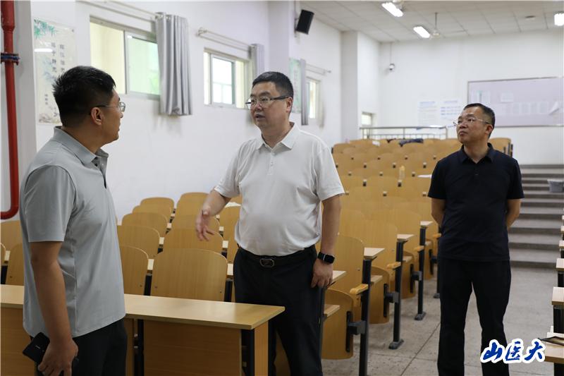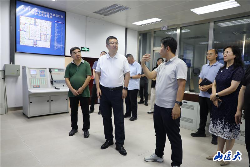 校領(lǐng)導(dǎo)一行分別到中都校區(qū)學(xué)生宿舍、校醫(yī)院、校園監(jiān)控室、操場(chǎng)、教室、第一食堂、澡堂等場(chǎng)所,深入了解各部門、各單位開學(xué)前各項(xiàng)準(zhǔn)備工作情況,對(duì)學(xué)校安全穩(wěn)定工作作出指導(dǎo),并對(duì)學(xué)生返校、教學(xué)管理、教學(xué)設(shè)備升級(jí)、教室修繕、食品安全及智慧校園建設(shè)等方面現(xiàn)場(chǎng)提出加強(qiáng)和改進(jìn)意見。