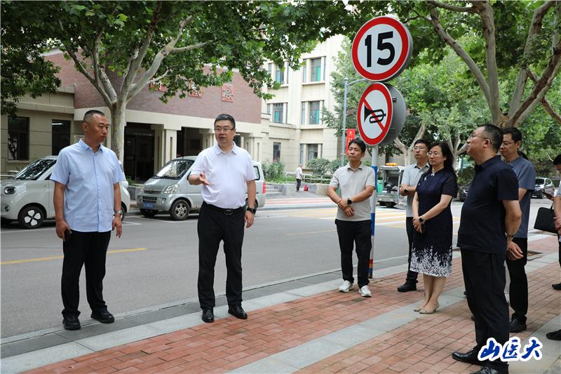 8月22日,校長(zhǎng)解軍帶隊(duì)深入學(xué)校中都校區(qū),全面調(diào)研秋季學(xué)期開學(xué)前準(zhǔn)備工作,檢查重點(diǎn)工程建設(shè)情況,系統(tǒng)排查校園安全隱患,看望慰問(wèn)一線工作人員并聽取意見建議。焦向英副校長(zhǎng)以及相關(guān)部門負(fù)責(zé)人陪同檢查。