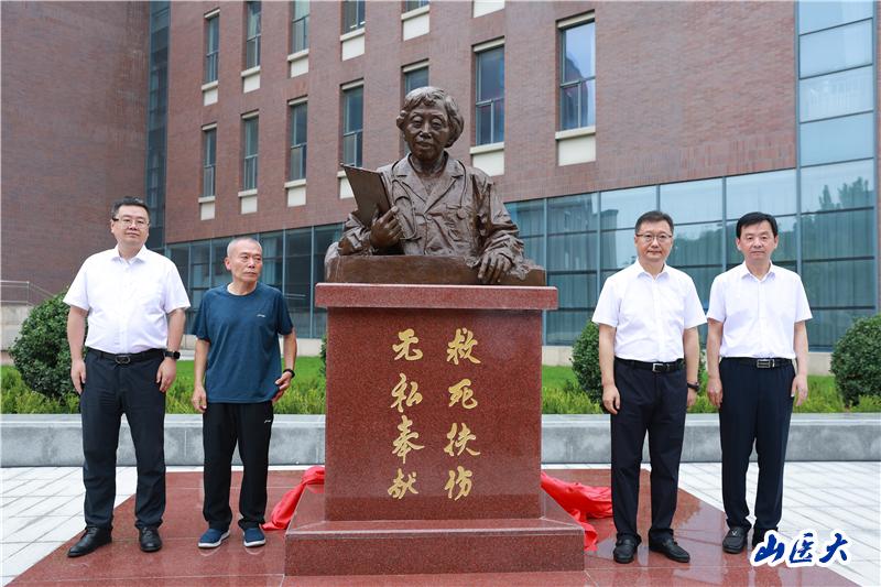 8月28日上午,我校優秀校友、全國首枚“白求恩獎章”獲得者趙雪芳的雕像落成揭幕儀式在中都校區隆重舉行。校黨委書記王軍、校長解軍、長治市人民醫院黨委書記胡文慶、趙雪芳之子王璐等出席儀式。校領導、學校和長治市人民醫院的相關單位部門負責人及學生代表等共100余人參加了儀式。儀式由校黨委副書記彭月蘭主持。