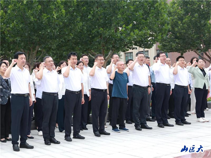 儀式上,王軍、解軍、胡文慶和王璐共同為雕像揭幕。解軍和王璐為雕像敬獻了花籃。參加儀式的師生醫護在雕像前重溫醫學生誓言,以增進人民健康福祉為使命與擔當,用奮斗踐行這份光榮的承諾。