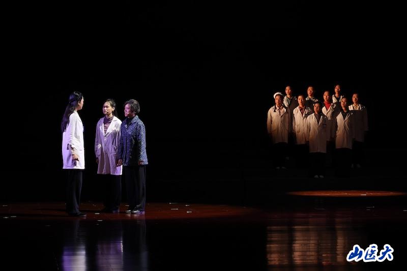 話劇《趙雪芳》是我校國家級一流本科課程《醫德教育實踐》“醫德典型教育”授課環節的重要內容,獲批教育部2024年度高校思想政治工作質量提升綜合改革與精品建設項目。該劇以我校優秀校友、全國第一枚“白求恩獎章”獲得者趙雪芳為原型,以其生平事跡為故事線索,將趙雪芳的感人事:凸膊吃蔽匏椒釹拙裨儐鐘諼杼,體現了“敬佑生命、救死扶傷、甘于奉獻、大愛無疆”的醫者精神。該劇于 2019 年8月19 日在山西大劇院首演,每年在校大學生劇場開展新生醫德典型教育專場演出、2024年在山西白求恩醫院、山西中醫藥大學、太原學院巡回演出,至今共計演出43。劭慈聳21000余人次,產生了廣泛的社會影響。