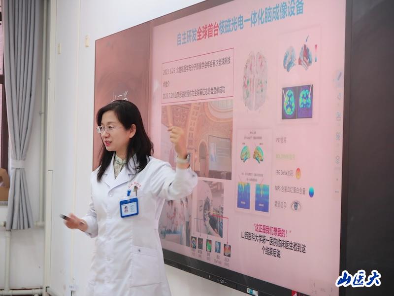 武志芳還介紹了山西核醫學的“守正創新”之路,深情回顧了其恩師、我國核醫學領軍人物李思進教授帶領團隊取得的系列重大成就。從牽頭建設國家衛生健康委核心臟數據庫,到自主研制全球首臺核磁光電一體化腦成像設備PMEEN;從推動臨床轉化具有獨立知識產權的放射性藥物自動化標記設備“輻睿智配”,到系統開發國產影像裝備、提升重大疾病精準診療水平;從持續完善診療規范、積極推動政策落地,到不斷深化對外交流、擴大中國核醫學國際聲量——李思進教授團隊在醫、工、研、管各領域全面突破,展現了核醫學在精準醫療時代的廣闊前景,也極大地增強了同學們的專業認同感與探索熱情。