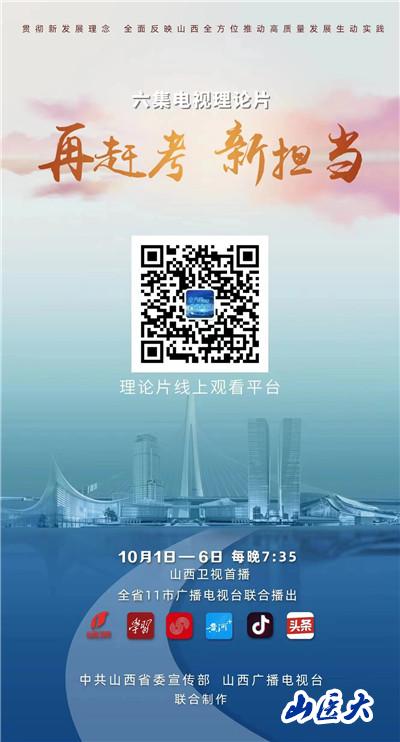 電視理論片《再趕考·新擔當》,是呈現省委團結帶領3500萬山西人民牢記領袖囑托、全方位推動高質量發展的實踐庫,是激勵三晉兒女奮進新征程、建功新時代、用不懈奮斗創造高品質生活的加油站,全面反映全省各界喜迎黨的二十大的實際行動和實踐成果。按照省委安排部署,該片10月1日-6日每晚7:35在山西衛視首播,請積極動員廣大師生醫護員工認真學習收看。