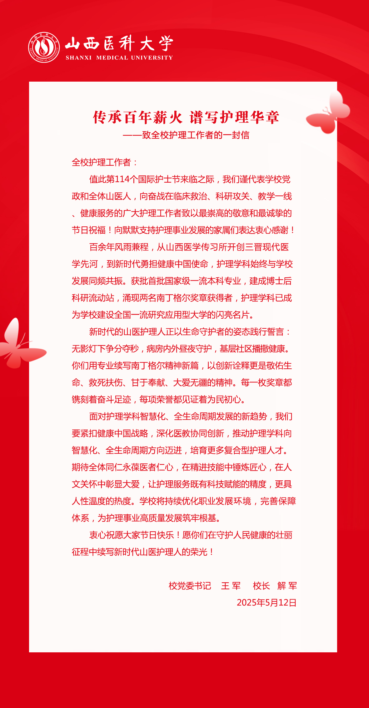 傳承百年薪火 譜寫護理華章——致全校護理工作者的一封信
