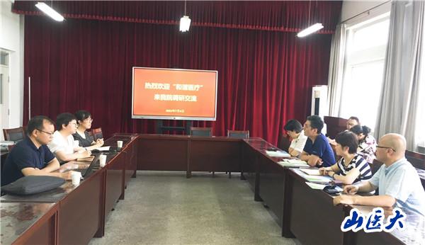 座談中,李紅梅對晉源區疾控中心、山西和諧醫療健康中心有限公司到院進行院地合作洽談、選賢納才表示熱烈歡迎。院長于琦介紹了管理學院的基本情況,包括師資隊伍、教育教學、科學研究等方面的情況。