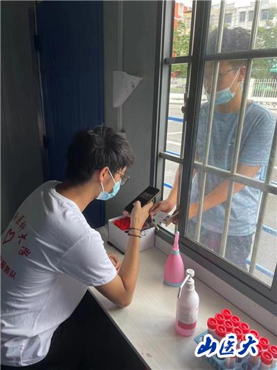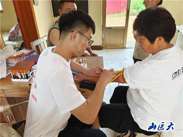 下午,隊員們進入了社區街道辦公室內對返并的省內省外人員進行登記,認真摸排其行程軌跡,嚴格落實疫情防控政策,共同守護來之不易的防疫成果。隨后,隊員們對社區的老人進行了免費抽血檢查,不僅學會了如何使用儀器進行采血,也通過實踐活動真切的深入到基層組織和群眾中,了解到了如今人們的生活在中國共產黨的領導下變得越來越好,明白了身為青年學生、山醫學生肩負的重任。