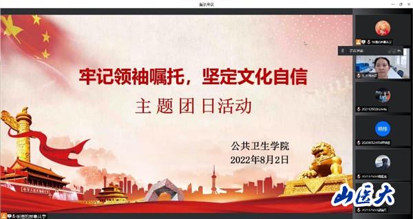 為引導學生更好地傳承中華優秀傳統文化,增強歷史自覺,堅定文化自信,8月2日晚,公共衛生學院線上舉辦了“牢記領袖囑托,堅定文化自信”主題團日活動。公共衛生學院黨委書記張志紅、學院學生會成員以及各年級團支部書記參加,活動由分團委書記張瑾主持。