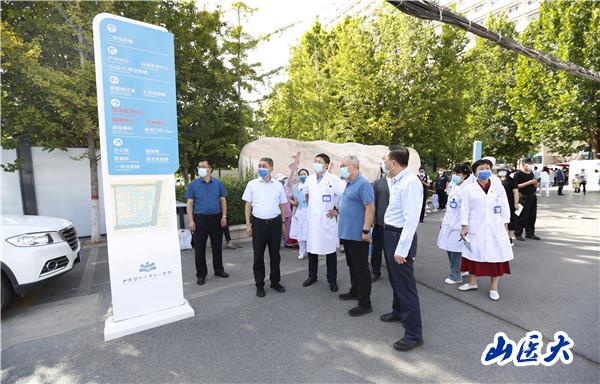 在1號住院樓入口處,張瑞平要求工作人員充分認識目前疫情防控的嚴峻形勢,始終保持高度警惕,落實落細疫情防控各項措施,做好住院部管理。同時要求強化各住院樓出入口管控,嚴禁門診患者進入住院部就診和處置,防止交叉感染。