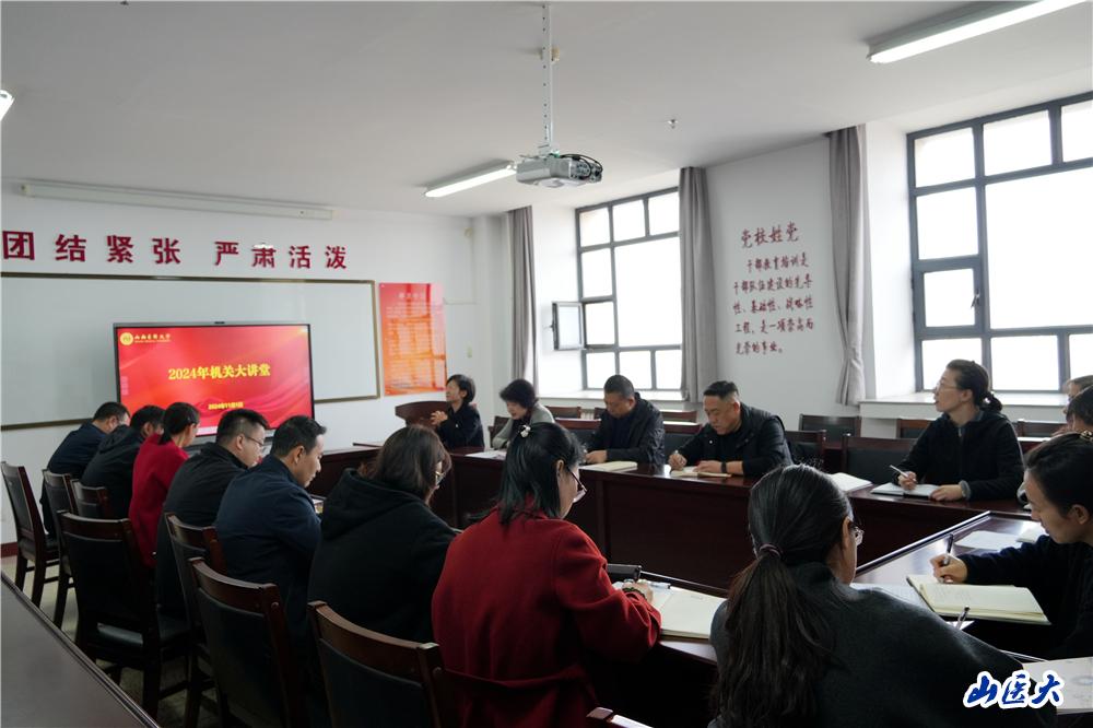 本次講座邀請山西社會主義學院講師王煥平授課。王老師從“中華民族共同體理論內涵”“中華文明與中華民族共同體”“中華民族先鋒隊與中華民族共同體”三個方面,對鑄牢中華民族共同體意識進行了專題輔導。通過列舉大量歷史和現實事例,通俗易懂地講解了鑄牢中華民族共同體意識的相關理論知識,并為做好今后工作提供了指導意見。