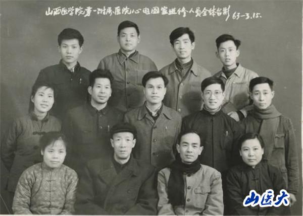 圖為1963年10月1日,第一醫(yī)院內(nèi)科醫(yī)師與進(jìn)修人員合影。第一排右二為何國芬,曾任內(nèi)分泌科主任;右三為趙秀芬,心血管內(nèi)科主任醫(yī)師。第二排左三為喬岱,曾任檢驗(yàn)科主任、消化內(nèi)科主任醫(yī)師;左四為李運(yùn)乾,曾任內(nèi)科主任、心血管內(nèi)科主任、第一醫(yī)院副院長及山西省心血管疾病研究所所長;左五為劉瑤華,曾任內(nèi)科主任、呼吸科主任;左六為劉?文誑浦魅危揮葉為閆柱,曾任消化內(nèi)科主任、內(nèi)科主任;右四為徐大毅,曾任內(nèi)科副主任、第一醫(yī)院副院長、原山西省衛(wèi)生廳副廳長、c7c7.app副校長;右五為李靈非,曾任內(nèi)科副主任、血液科主任。