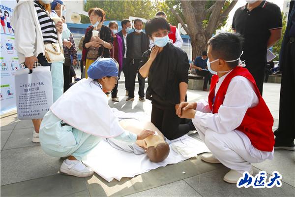 “防災(zāi)減災(zāi)”主題重點(diǎn)為普及全民急救知識(shí),讓更多的人掌握急救技能。活動(dòng)中,急診醫(yī)學(xué)中心的護(hù)理骨干們分別進(jìn)行了呼吸心跳驟停、氣道異物、創(chuàng)傷、中毒等現(xiàn)場(chǎng)急救技術(shù)的演示與講解,手把手指導(dǎo)群眾學(xué)習(xí)徒手心肺復(fù)蘇術(shù)、海姆立克法、止血包扎等急救技術(shù)。群眾熱情高漲,踴躍參與,爭(zhēng)先恐后地在模擬人身上練習(xí)心肺復(fù)蘇技術(shù)。