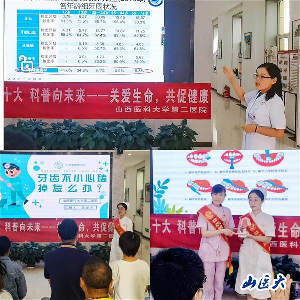 9月16日上午,在第34個(gè)“全國(guó)愛牙日”來(lái)臨之際,第二醫(yī)院口腔科赴杏花嶺區(qū)鼓樓街道西羊市社區(qū)進(jìn)行了以“口腔健康,全身健康——護(hù)牙健齒少年強(qiáng),健康中國(guó)民族興”為主題的科普義診活動(dòng),11名醫(yī)護(hù)人員參加了科普義診。
