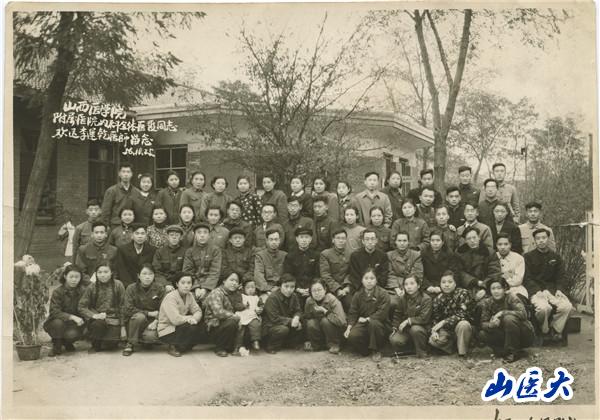1956年10月25日,山西醫學院附屬醫院內科全體醫護同志歡送李運乾醫師留念。圖中第二排左六為李運乾。