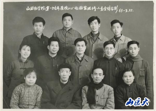 1963年3月15日,山西醫學院第一附屬醫院心電圖室進修人員全體合影。第一排右二為李運乾。