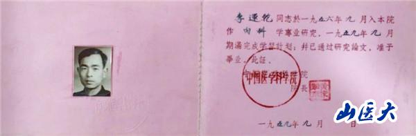 1959年李運乾獲得中國醫學科學院頒發的研究生畢業證書。2017年李運乾贈予中國心血管醫學博物館。