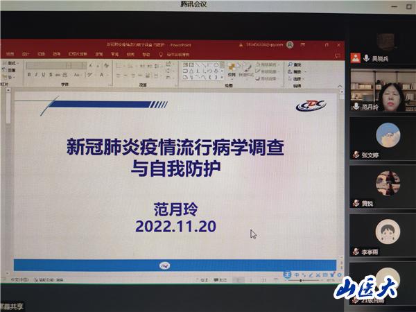 為了保證志愿活動的高效率完成,提高志愿服務專業性,學校第一時間對援助校外疫情防控的志愿者們組織了培訓。開學以來,校團委先后聘請山西省疾控結核病防治科科長范月玲、太原市疾控應急辦主任郭慧芬、太原市新冠防控專家組成員車曉文和太原市疾控應急辦副主任馬彩鳳對負責校內外的志愿者們分批次進行了線上培訓。通過培訓,傳遞了疫情防控專業知識,更點燃了志愿者們的奉獻熱情。專家們詳細講解了志愿活動過程中的工作建議,包括自我防護的重要性,防護服的穿脫順序,流調工作中的相關注意事項等,志愿者們表示“對于目前的疫情有了更為清楚的了解,對于志愿活動中承擔的責任也有了更為清晰的認知。”