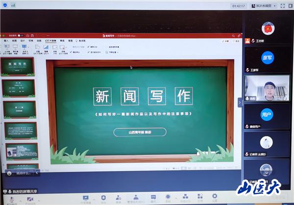 為提高學生社團記者的新聞寫作與攝影水平,增強新聞素養(yǎng)和創(chuàng)新能力,12月4日晚,校黨委宣傳部特邀山西青年報優(yōu)秀記者陳彤與山西省著名攝影家梁銘,通過線上騰訊會議平臺舉辦了學生記者新聞能力提升培訓會。校報、校電視臺、校廣播站、校微博協會等學生社團成員及校黨委宣傳部相關人員等共計280余人參加了會議。