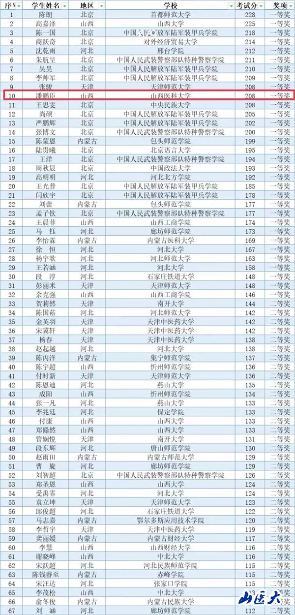 近日,2022年華北五。ㄊ、自治區(qū))大學(xué)生人文知識(shí)競(jìng)賽總決賽落下帷幕。經(jīng)過(guò)校級(jí)選拔、省級(jí)復(fù)賽、決賽層層選拔,來(lái)自華北五省各賽區(qū)決賽的前20名選手進(jìn)入總決賽,經(jīng)過(guò)激烈競(jìng)爭(zhēng),我校護(hù)理學(xué)院2021級(jí)本科生潘鵬臣在總決賽中斬獲一等獎(jiǎng)。