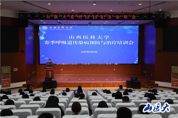 為切實做好學校春季呼吸道傳染病防控工作,有效預防與控制春季呼吸道傳染病的發生和流行, 3月9日上午,學校在中都校區教學辦公樓一層學術報告廳舉辦了春季呼吸道傳染病預防與治療培訓會,特邀太原市疾病預防控制中心傳染病防制科科長韓婷、第一醫院呼吸與危重癥醫學科主任醫師李冬艷作專題講座。會議由黨委辦公室、校長辦公室主任趙良淵主持,學校相關部門負責人、全體輔導員、校醫院工作人員和部分學生代表等120余名師生參加了此次培訓。