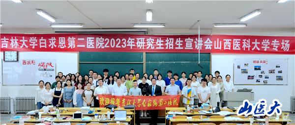 6月5日,我校在迎澤校區C座19教室舉辦吉林大學白求恩第二醫院研究生招生宣講,宣講團隊由白求恩第二醫院研究生與培訓教育部景云川老師帶隊,白求恩第二醫院核醫學科博士生導師趙銀龍教授、腎病內科主任博士生導師崔文鵬教授、泌尿外科博士生導師范海濤教授、放療科副主任碩士生導師劉忠山副教授以及我校100余名2024屆畢業生參加宣講會。
