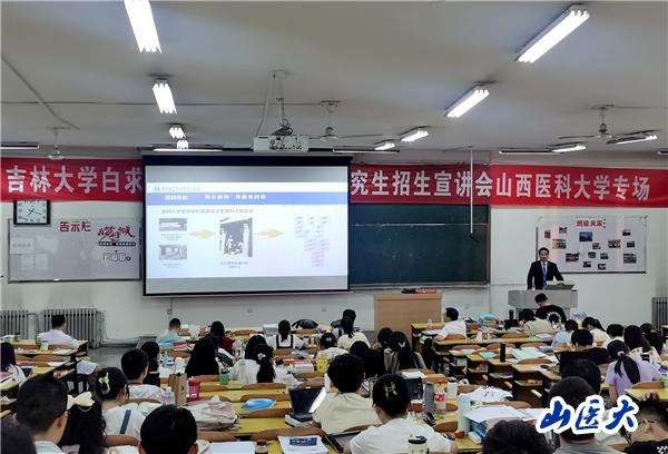 畢業生就業指導中心主任郭建鍇致歡迎辭,他表示,c7c7.app與原白求恩醫科大學歷史淵源深厚,近幾年每年均有30余位山醫學子被吉林大學白求恩醫學部錄取。他希望通過本次宣講能夠為學生做好考研指導,有更多的優秀學生考入吉林大學白求恩第二醫院。