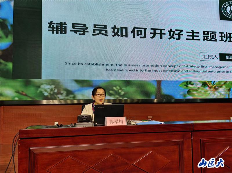 郭翠梅以“如何開好主題班會”為主題,從是什么、為什么、怎么開三方面結合自身日常工作案例,與大家分享了許多輔導員工作中遇到的經驗和方式方法,白天要做到走、干、講,晚上要伏案讀、寫、想。她講到,作為輔導員要堅守教育信條,要抓住關鍵的人,在每一個關鍵節點,做一件件關鍵的事。學生的成長,需要輔導員的愛心、責任心和智慧來共同澆筑。在場的輔導員聽后都感同身受、深受啟發。