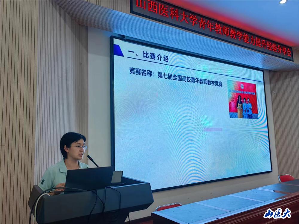 張愛平教授是本次省級青教賽醫(yī)科組的評委組長,分享會上她以“如何提升教學(xué)能力”為題,從練就扎實教學(xué)基本功、如何規(guī)范書寫教案、如何準(zhǔn)備教學(xué)比賽、如何規(guī)范制作PPT四個方面進行了講述,并就如何上好一節(jié)課給青年教師做出了具體指導(dǎo);龍女老師是本次全國青教賽醫(yī)科組二等獎的獲得者,她從比賽規(guī)模、備賽時間、材料提交、違紀(jì)處理等多方面分析競賽變化,從“熟”悉教學(xué)內(nèi)容、多方面“能”力提升、無“生”課堂教學(xué)如何進行有效的互動、“巧”妙的教學(xué)設(shè)計四方面,分享了寶貴的教學(xué)競賽實戰(zhàn)經(jīng)驗。