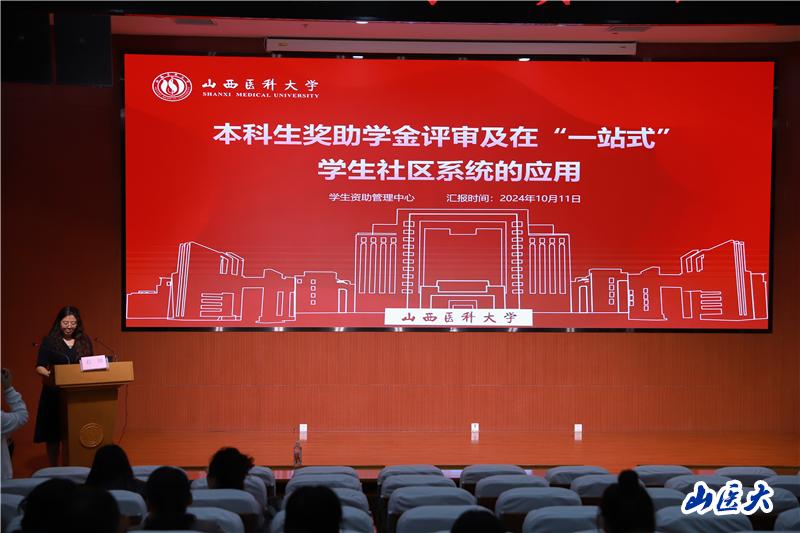 石璟詳細解讀了我校獎助學金資助政策體系,包括各類資助項目的申請條件、資助標準、評審程序、資金管理等;結合本年度已經結束的家庭經濟困難認定工作、國家獎學金評審工作和即將開展的國家勵志獎學金、本科生綜合獎學金評審工作,介紹了學校資助工作的具體流程、重點難點、注意事項;通過實踐操作、圖文結合的方式,介紹了“一站式”學生社區線上服務平臺的功能設置、?櫸智筒僮鞣椒。