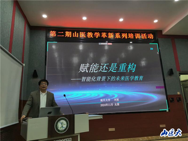 11月18日,山醫(yī)教學(xué)革新系列培訓(xùn)活動(dòng)第二期在第一臨床醫(yī)學(xué)院舉行,特邀南開(kāi)大學(xué)醫(yī)學(xué)院的劉寅教授做專(zhuān)題培訓(xùn)。第一臨床醫(yī)學(xué)院副院長(zhǎng)韓清華、學(xué)校教務(wù)部副部長(zhǎng)劉佳佳、教務(wù)部醫(yī)學(xué)教育研究中心主任劉楠等出席開(kāi)幕式。第一臨床醫(yī)學(xué)院60余名臨床教師參加了線(xiàn)下培訓(xùn),線(xiàn)上1200余人同步觀摩。培訓(xùn)由第一臨床醫(yī)學(xué)院教學(xué)部部長(zhǎng)施熠煒主持。