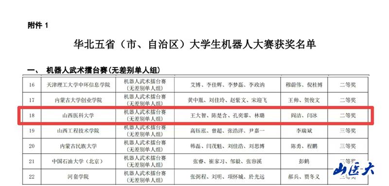 11月16日,華北五省(市、自治區)大學生機器人大賽決賽在北京信息科技大學落下帷幕。由我校計算機教學部閻潔和閆冰老師指導,2023級信息管理與信息系統專業王大智、智能醫學工程專業林璐、臨床醫學(5+3一體化新醫科智能醫學)專業孔奕霏及2024級護理學專業陳楚含四位同學組成的“逐月”團隊在機器人武術擂臺賽(無差別單人組)中一路披荊斬棘、力爭上游,最終以排位賽第4名、總排序第18名的優異戰績喜獲二等獎,實現了我校在國家級大學生機器人賽事中零的突破。