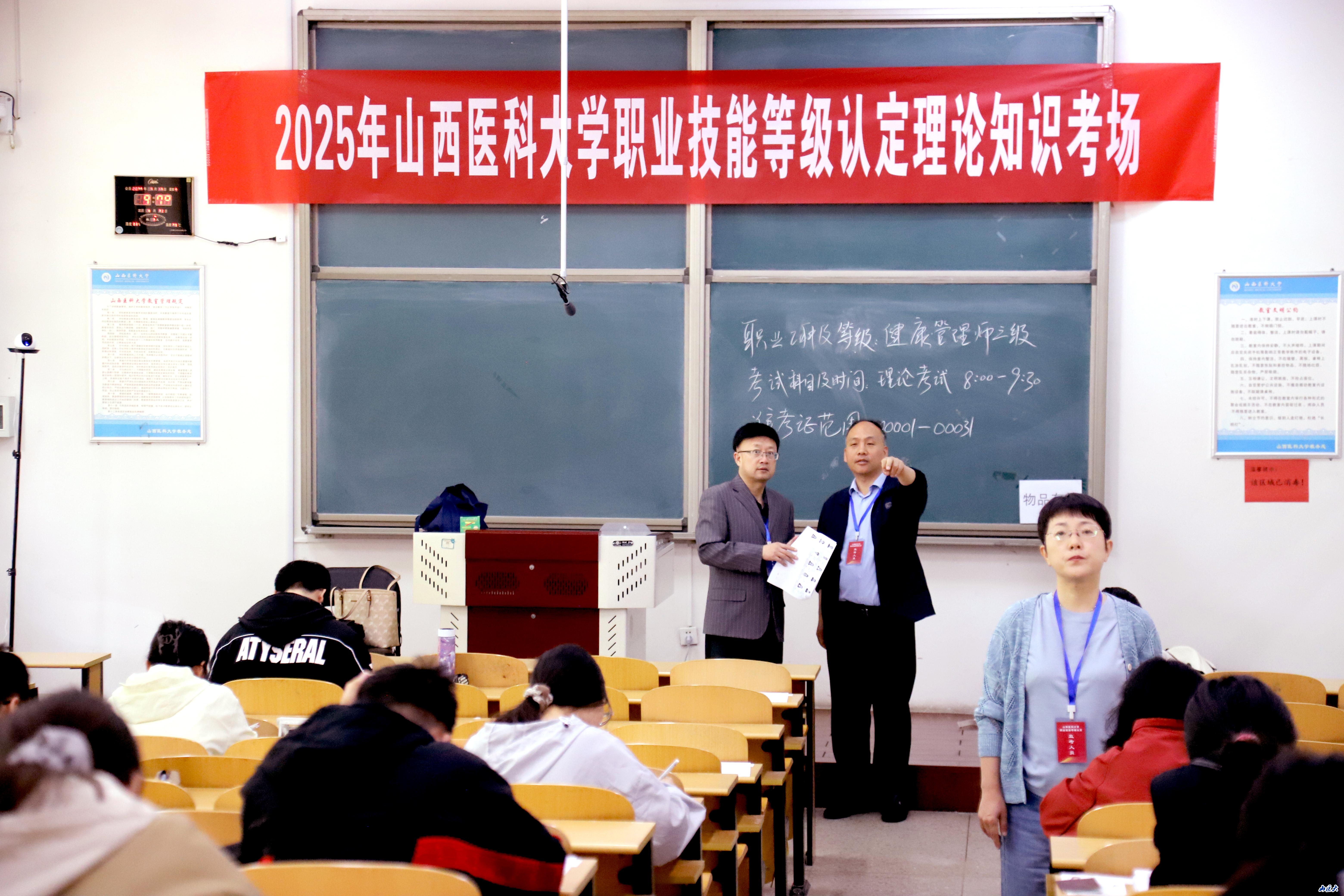 本次考試嚴格對標山西省《2025年職業技能提升工作方案》要求,面向臨床醫學、預防醫學、護理學、藥學等十個專業學生開展。這是落實《實施“技能照亮前程”培訓行動 暨2025年職業技能提升工作方案》(晉人社廳發〔2025〕16號)的具體舉措,通過將職業技能標準融入醫學人才培養全過程,切實提升畢業生就業競爭力。在考試中,學校構建了"理論+實操+案例"三維評價體系,創新考評機制,嚴格考評程序,確?計樂柿。為強化考務管理,所有考場均配備智能監控系統,理論及實操考核全程錄像,嚴格遵循省方案中"每學時連續錄像不低于10分鐘"的技術規范,影像資料將保存3年備查。為確?際怨焦⒘"三審三查"工作機制:考前嚴格審查考生資格,核對學籍信息;考中實行"雙考評員"制度,聘請21名三甲醫院專家參與認定;考后實施成績三級復核。所有考評資料將同步錄入省職業技能培訓實名制系統,實現全流程可追溯。山西省職業技能鑒定中心高度重視,派出專項督導組全程駐點巡視,通過現場巡查、資料抽檢、座談反饋等方式強化監督指導,確保本次考試的公正、順利完成。