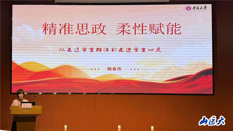 本次培訓邀請中北大學儀器與電子學院副院長魏春燕作專題報告。魏春燕參加工作19年以來一直奮戰在輔導員工作一線,曾獲第三屆山西省高校輔導員職業能力大賽金獎、第十五屆全國“高校輔導員年度人物”等多項榮譽。在題為《精準思政 柔性賦能》的報告中,她圍繞“初心·使命”“固本·務實”“團結·協作”三個主題分享了實踐經驗。她闡述了輔導員如何以學生需求為導向構建全覆蓋、分層次、個性化的育人矩陣,實現“從走近學生群體到走進學生心靈”的深度育人。她倡導在心理健康教育與價值引領之間找到聯動支點,讓學生既能“被看見”也能“被成就”。