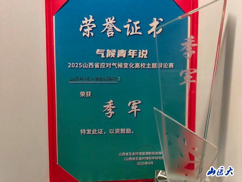 近日,2025“低碳中國行”暨氣候行動周活動(山西站)的重要項目——“氣候青年說·2025山西省氣候變化高校主題辯論賽”決賽在山西師范大學圓滿落下帷幕。我校學生社團縱橫哲學社斬獲大賽季軍,其中縱橫哲學社成員2023級藥學專業朱炫燁、2023級法醫學專業趙天鴻榮獲單場最佳辯手稱號。